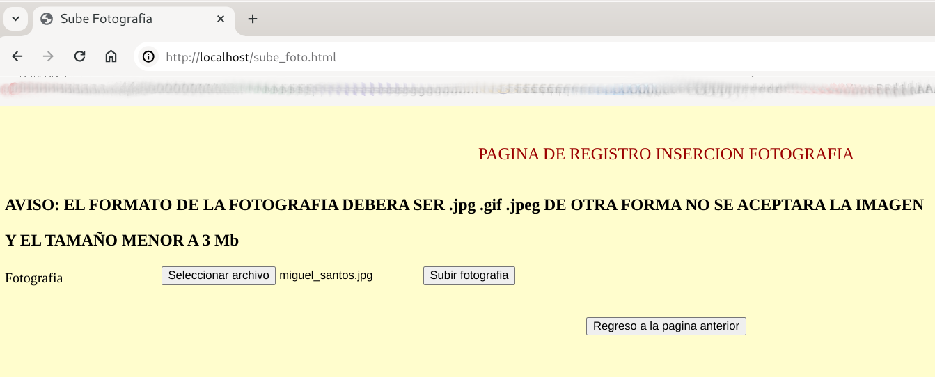 <h3> AVISO: EL FORMATO DE LA FOTOGRAFIA DEBERA SER .jpg