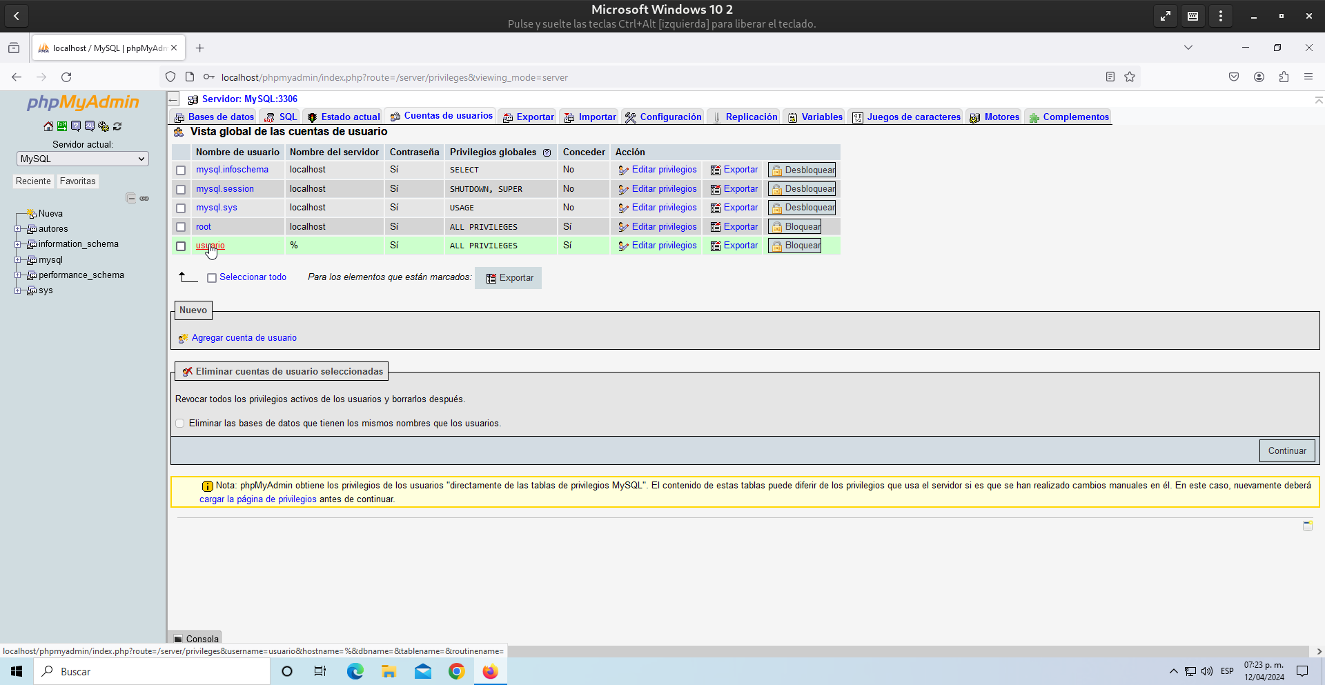 Aplicamos el botón Regreso a la pagina anterior y en la anterior